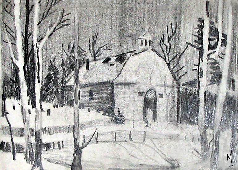 Church in the Snow Another exercise in Graphic Art School. 1973 Charchoal