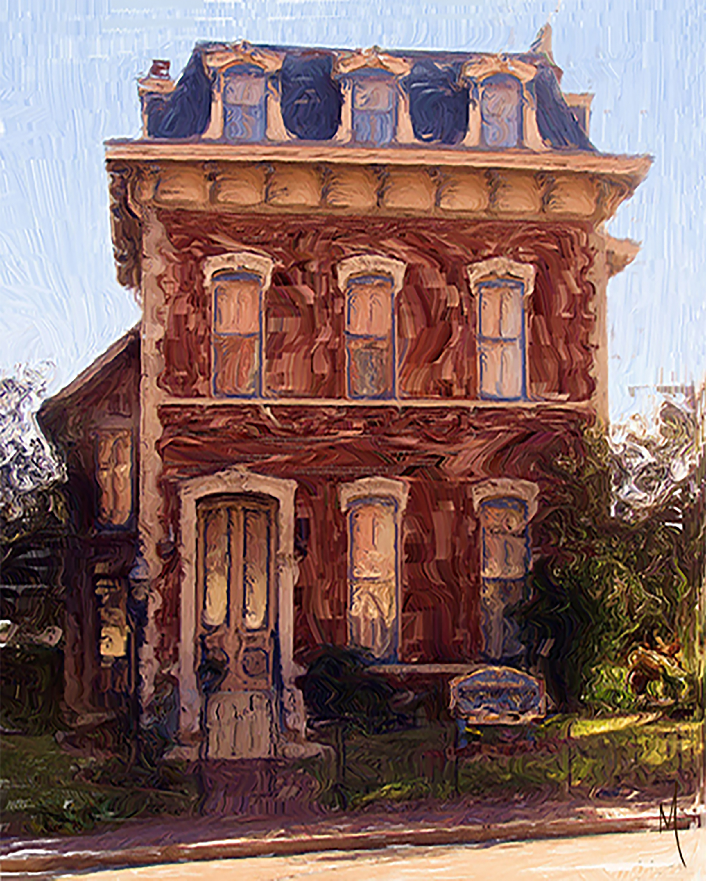Gruenewald House,Anderson, IN This three story Italianate / Second Empire style house was listed in the National Register of Historic Places in 1976. Photographed and Digitally painted in 2007
