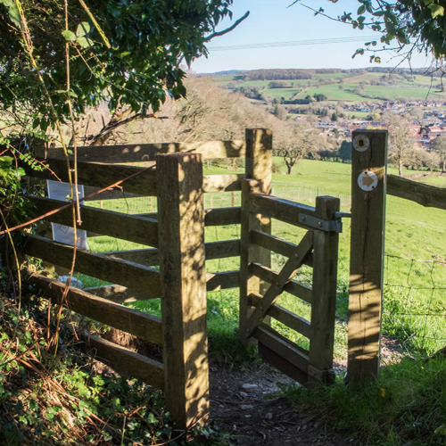The "kissing gate" seen in both images are found all over England so that people can access fields without leaving gates open and letting livestock out.