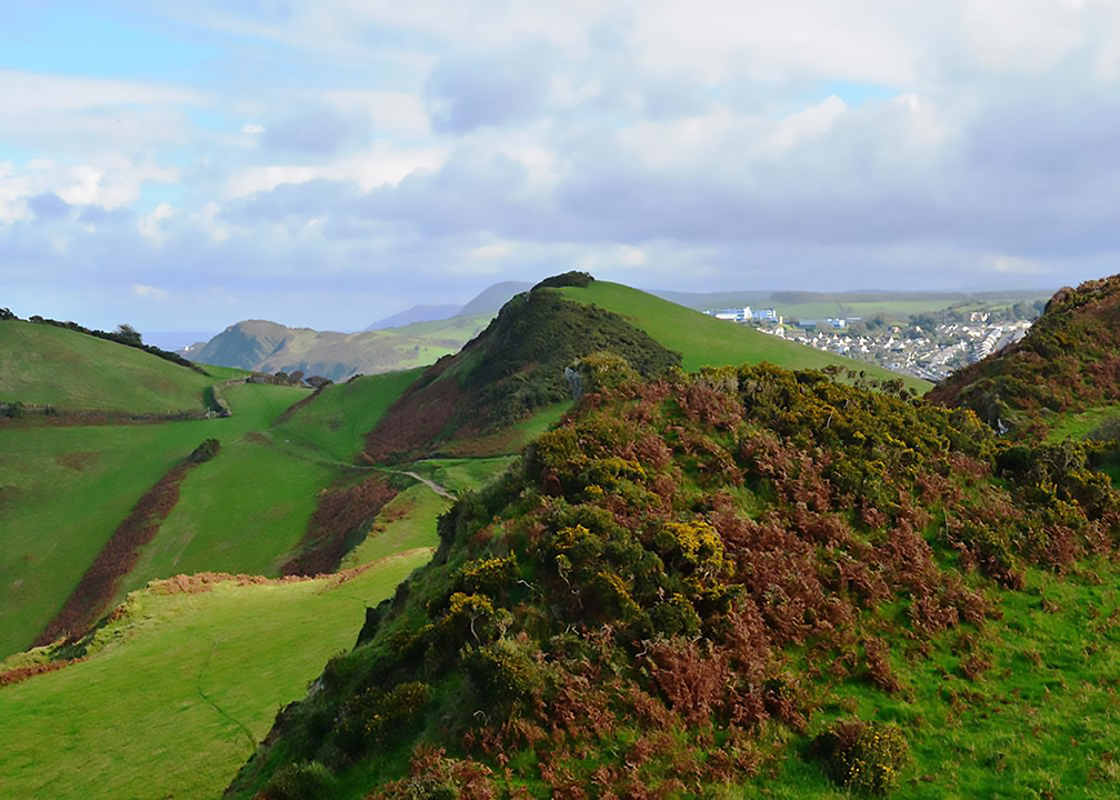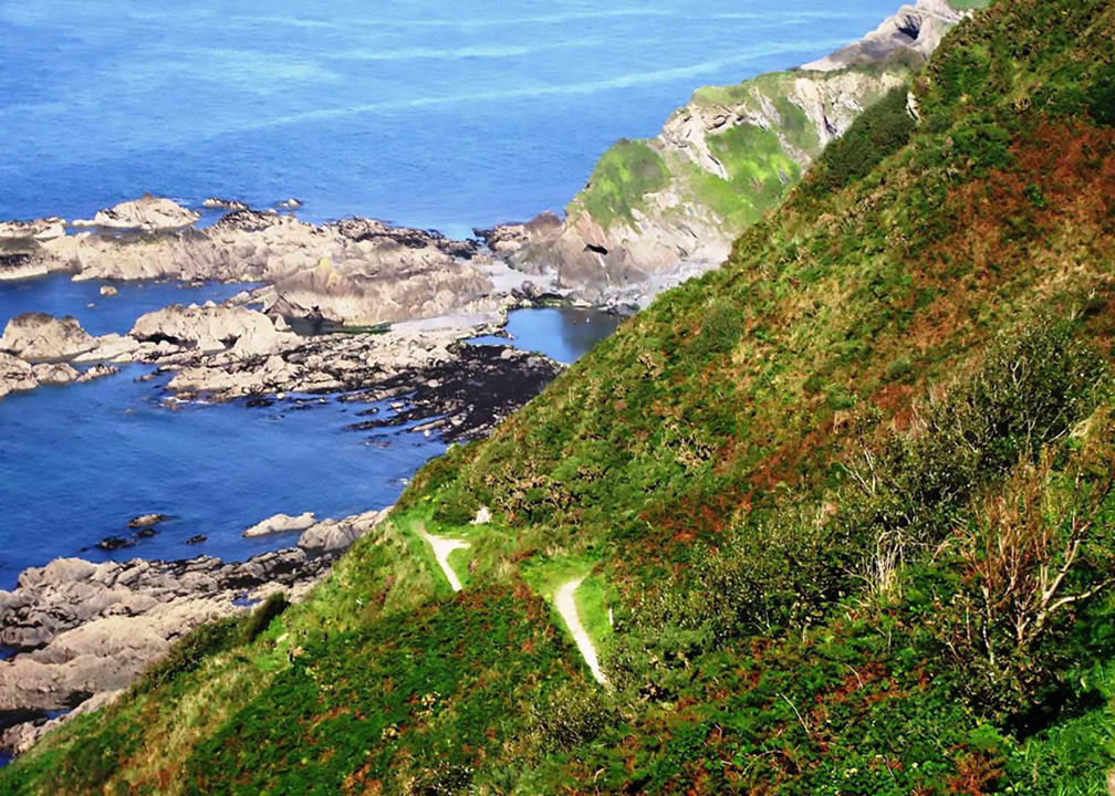 The zig-zag path up the cliff from Illfracomb wraps around the first hill or torr.