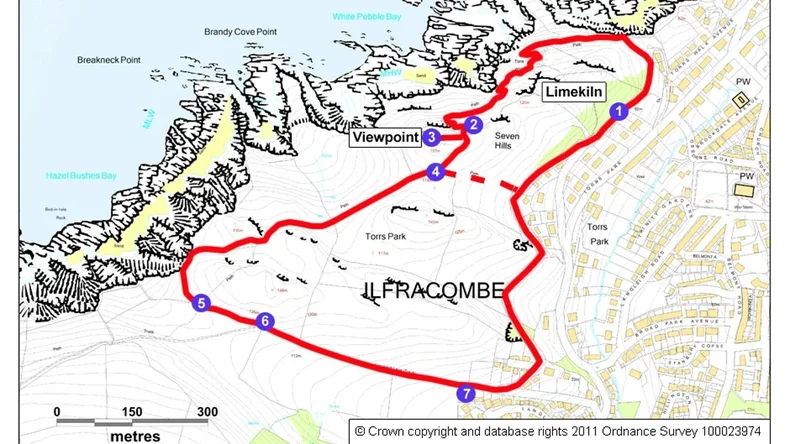 "The Torrs Walk in Ilfracombe, England, refers to a scenic walking route traversing the Torrs, a series of hills and cliffs west of the town.